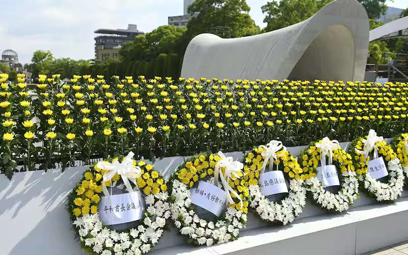 la bomba atomica devasto' Hiroshima, la citta' giapponese rende omaggio alle vittime con una cerimonia solenne, tra silenzio e memoria.